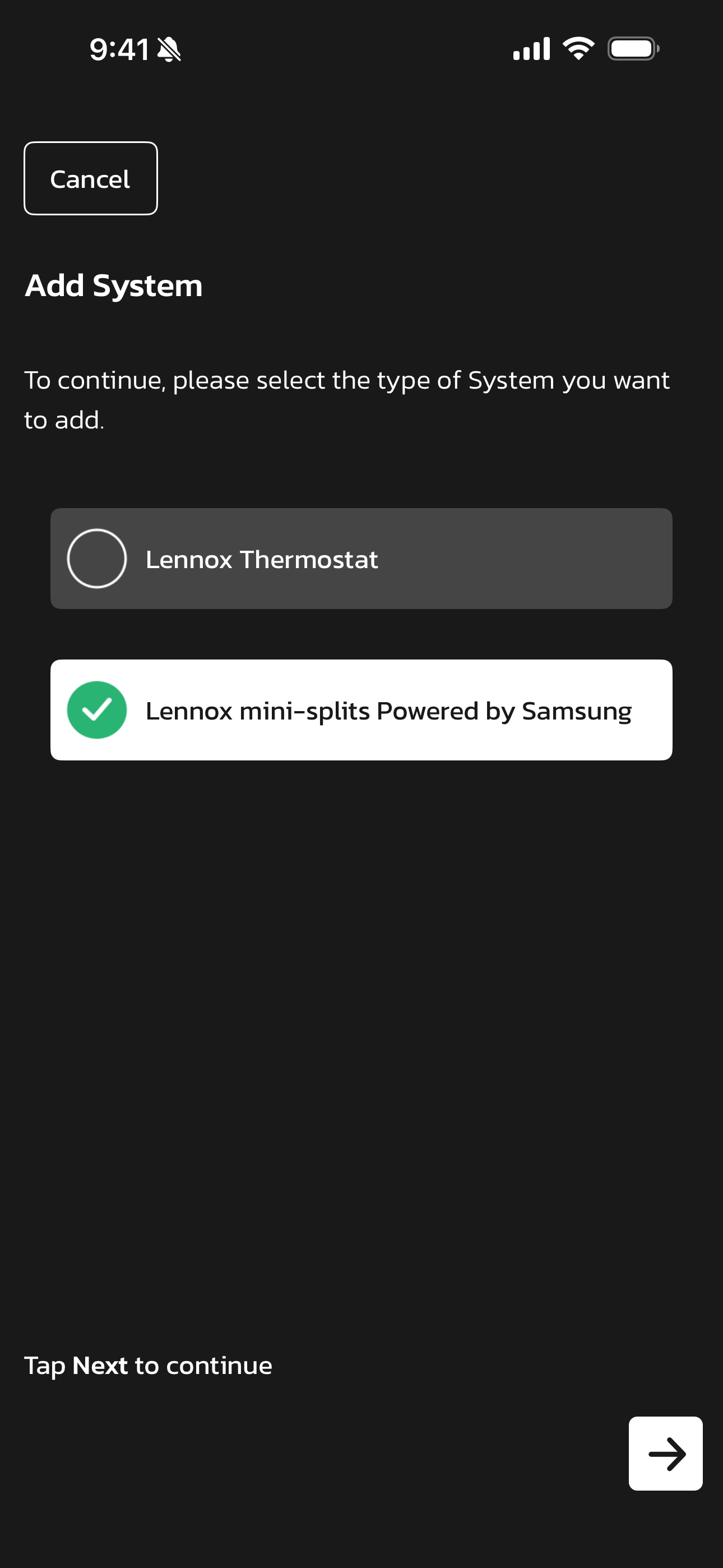 - You will see that you can either add a Lennox Thermostat or a Lennox mini-splits Powered by Samsung.