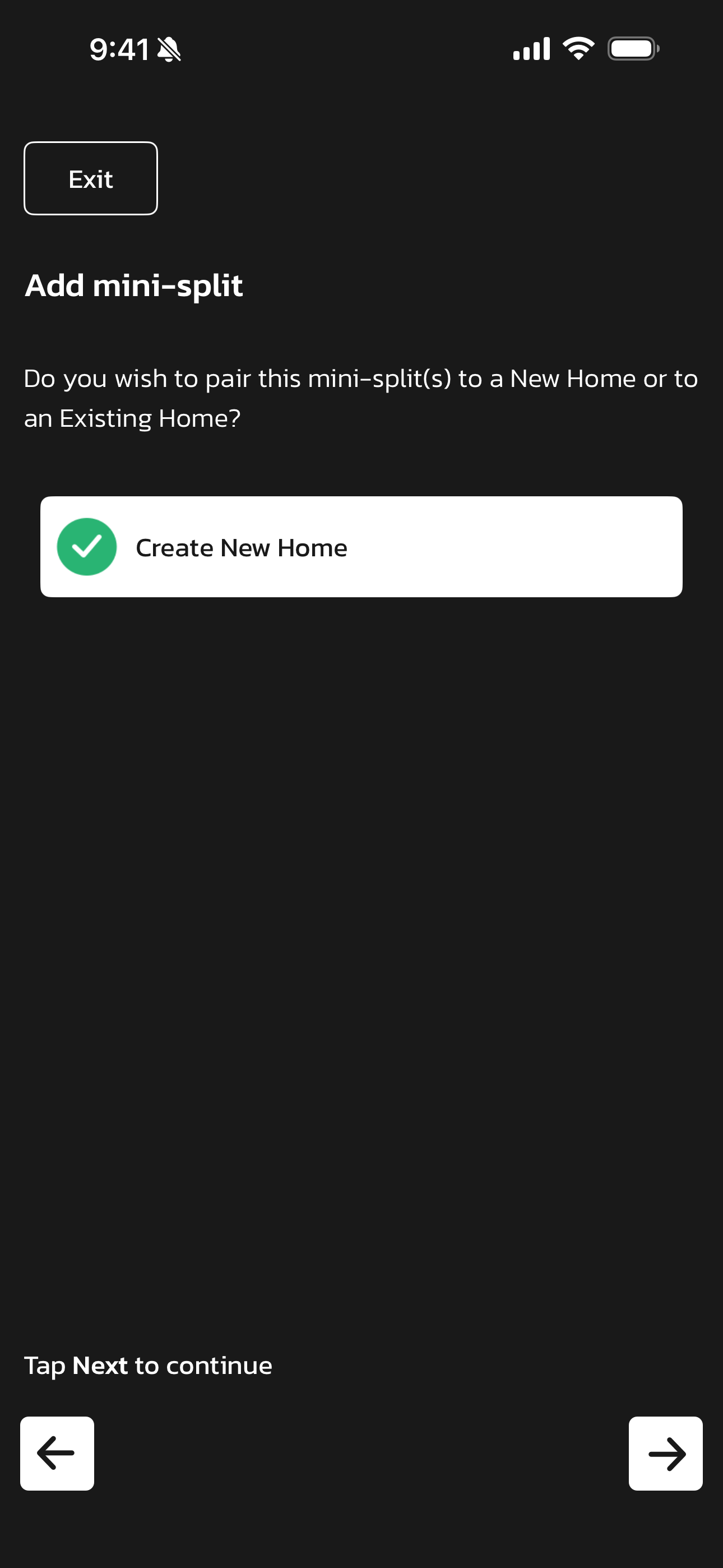 - You will be prompted to Create New Home if one has not been previously set up.