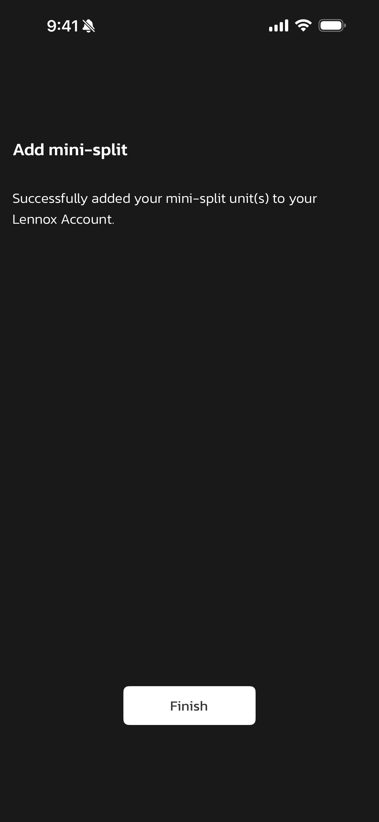 - Your Mini-Split has been successfully added to your home. Click Finish.
