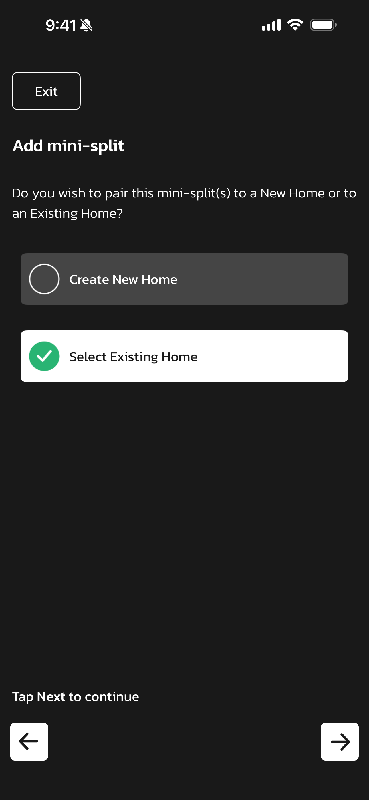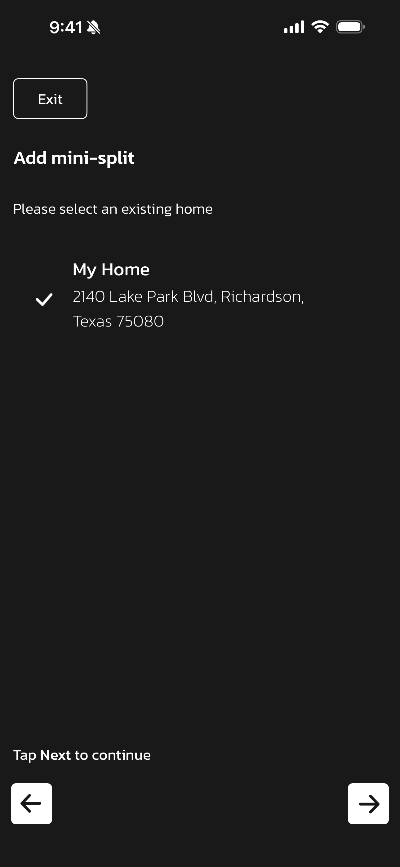 - Select the home you'd like to use. Once selected, a checkmark will appear.