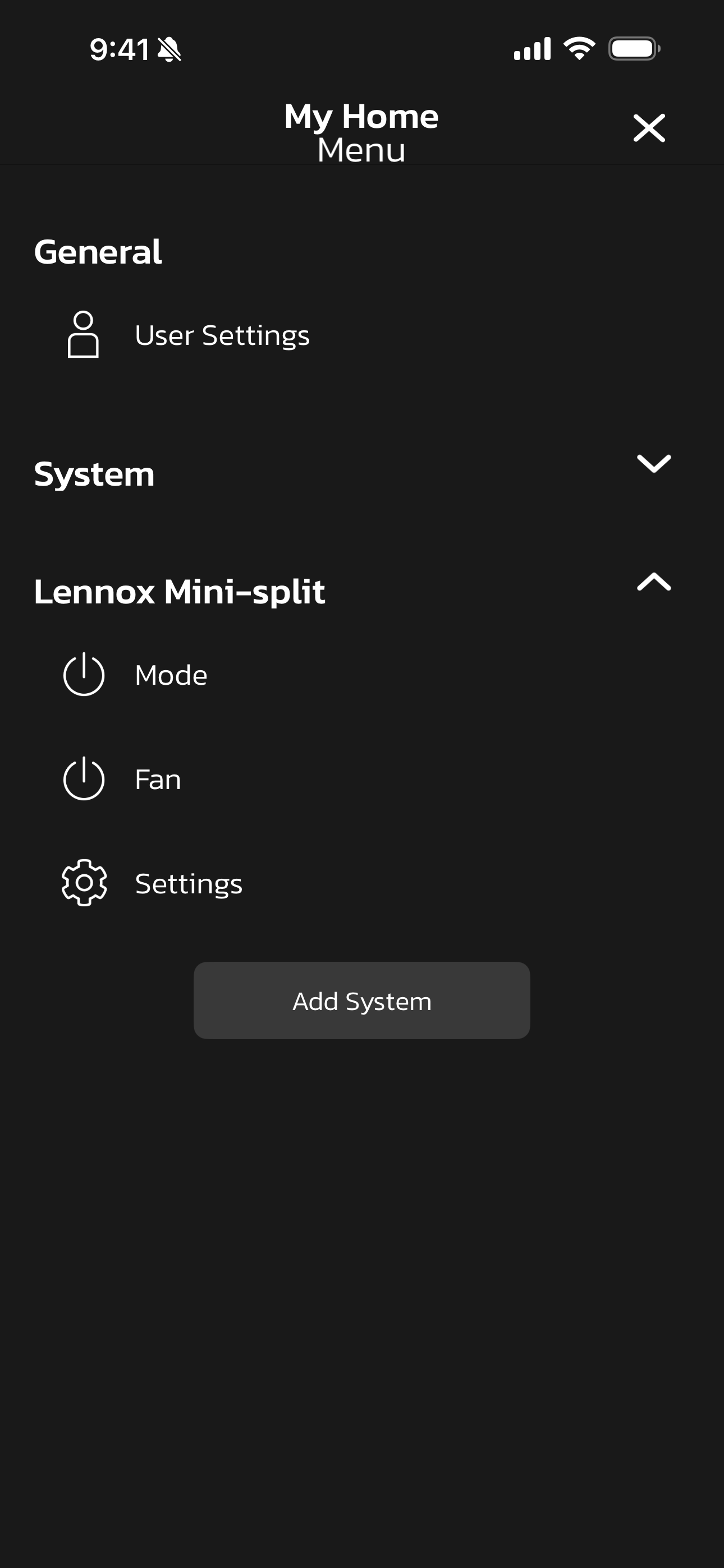 - From the home screen, select the menu icon in the top left corner. Select Add System.